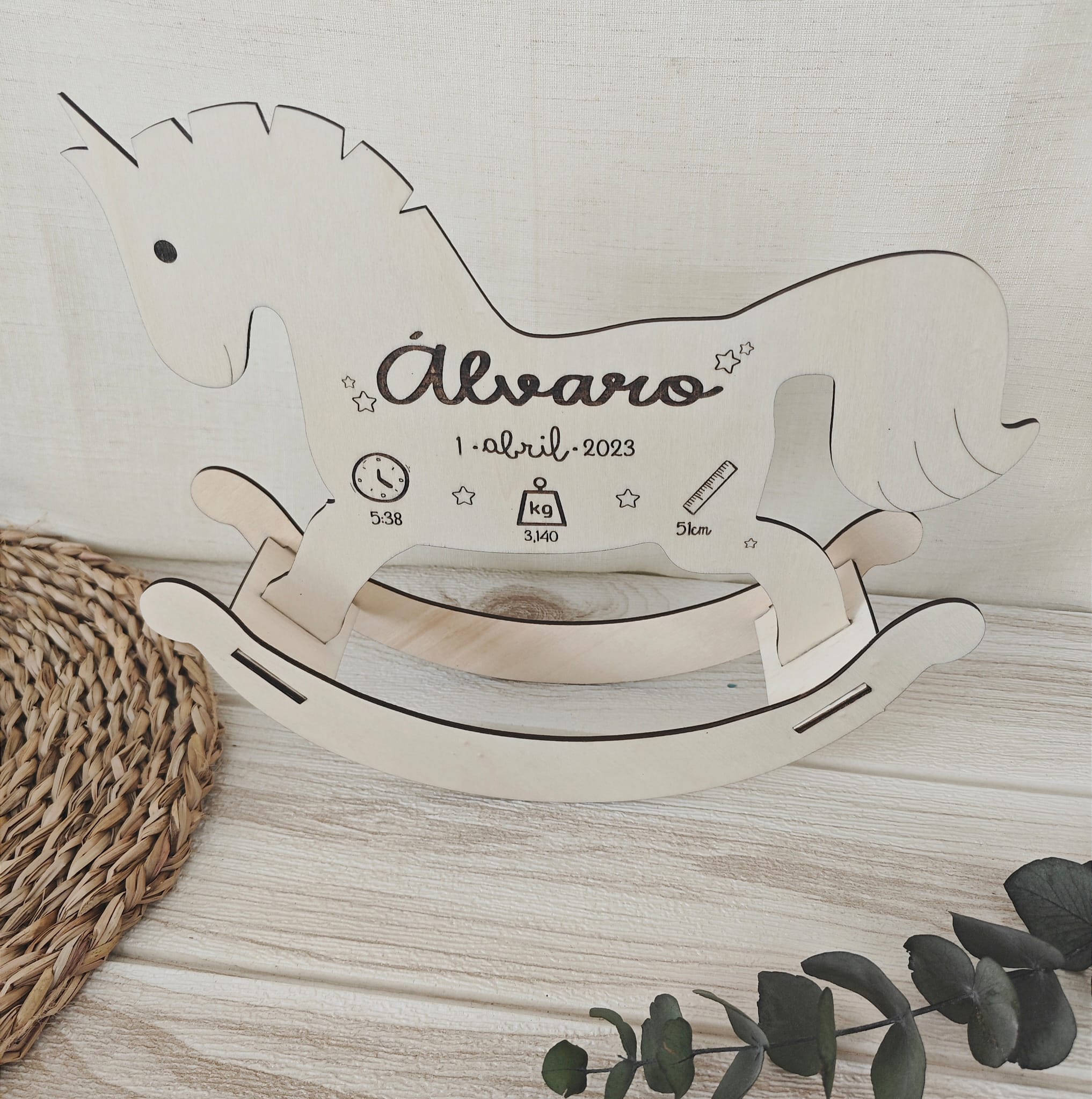 Natalicio con forma de caballito que se balancea.