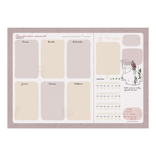 Presenta 54 hojas con espacio para la planificación de cada día de la semana y anotaciones. Incluye un recuadro para mes o fecha. Encuadernación encolada y orientación horizontal. Fabricado con licencia 100% oficial.