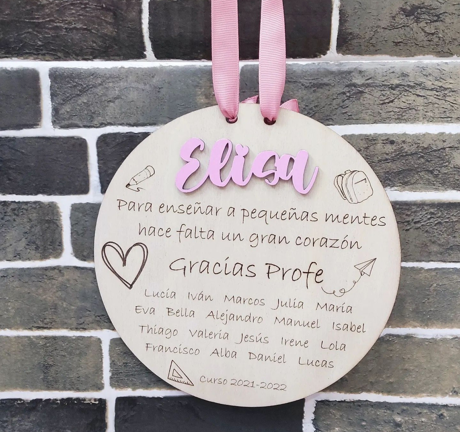 Precioso mensaje en madera ,con nombre o título en madera pintado a mano(color a elegir) y mensaje grabado.