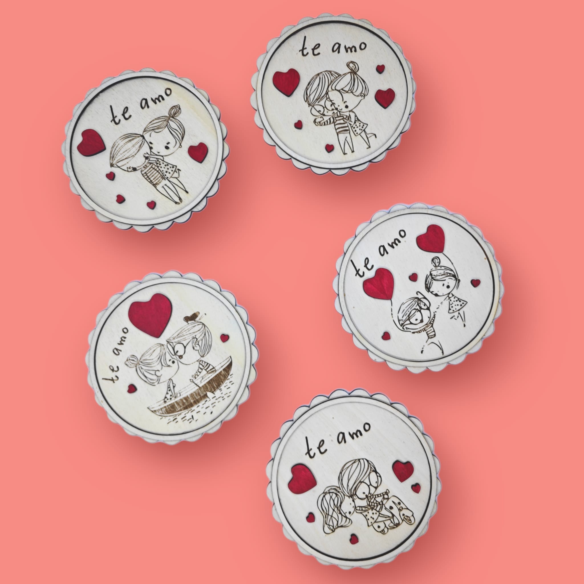 Bonitas tartaletas con toques a color pintados a mano y monigotes enamorados.